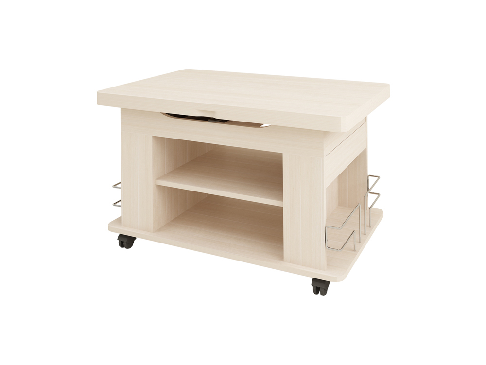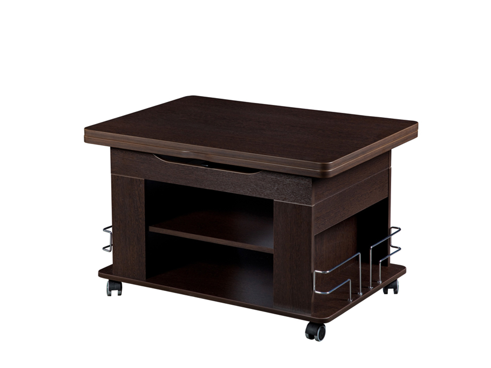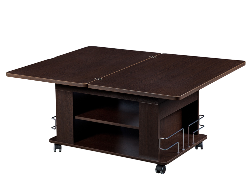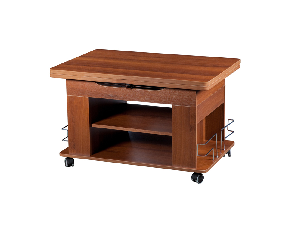 «Агат 23» – это многофункциональная модель, которая сочетает в себе функции журнального и обеденного стола. Cтолешница легко поднимается до высоты 75 см за счет механизма подъема и увеличивается вдвое – благодаря поворотному механизму.