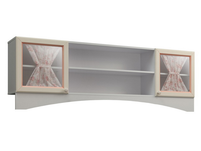 Навесная секция из серии «Алиса». Выполнена в классическом стиле с кремовыми крашеными фасадами из МДФ и декоративными шторками. В секции можно разместить книги, фотографии и дорогие сердцу вещи. Это замечательное дополнение к софе и комбинированному шкафу из этой же серии – с ними можно создать компоновку в лучших традициях классических спален. «Алиса» - личный уголок Франции!