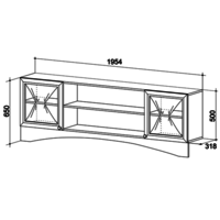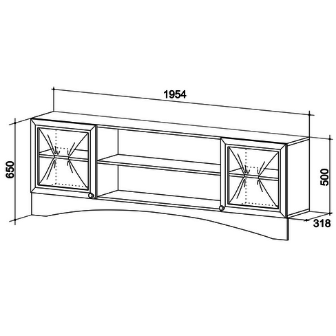 Состоит из: 2-х отделений с полками и шторками, открытых полок.