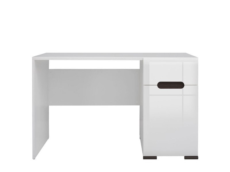 В правой части расположен 1 выдвижной ящик, в нижней части расположена 1 глухая распашная дверь, за которой находится полка из ДСП;