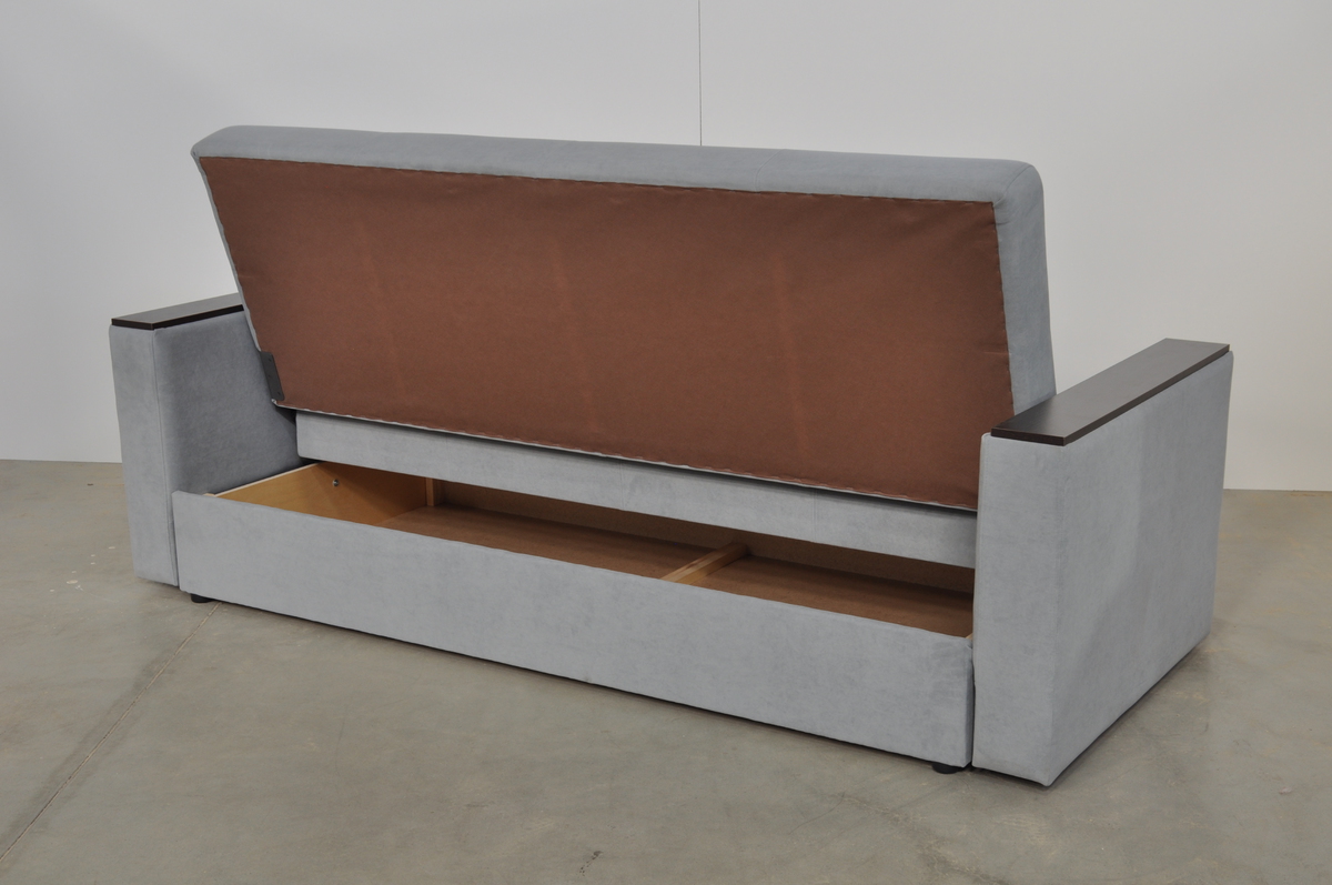 Особенности: основание дивана пенополиуретан, короб для белья, накладки на подлокотниках из цветного ЛДСП.