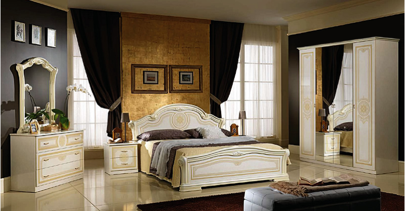 Цена спального гарнитура включает: кровать двуспальная, стандартный комод с 3-мя ящиками, шкаф (4-х дверный), 1 тумба с 2-мя ящиками.