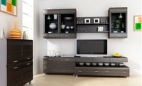 Композиция Камелия-6 в цвете венге могла бы быть вполне непримечательной, за счет цвета и традиционности элементов. Но, правильно разместив антресоли АН-608 и АН-605, а между ними полочки и внизу выставив ряд тумб с закрепленными над ними антресолями АН-611, получилось нечто необычное (напоминает чебурашку). Впрочем, в другом цвете, скорее всего, этот эффект пройдет. Но менее интересной стенка не станет, в сливе валлис она станет теплее, а дубе беленом - нежнее.