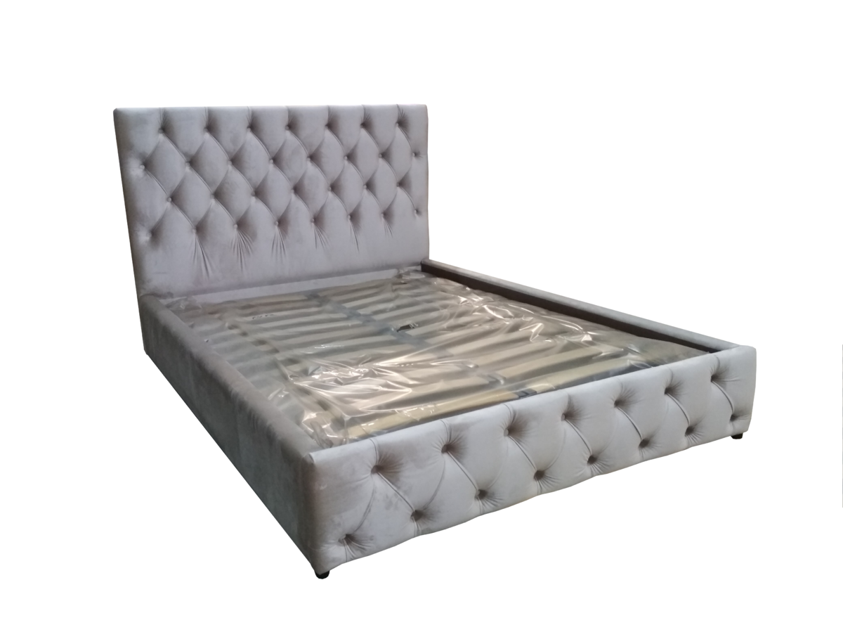Особенности: Кровать установлена на пластиковые опоры h=25мм. Высота изголовья 1140 мм, изголовье и перядняя царга с каретной стяжкой (пуговицы или стразы).