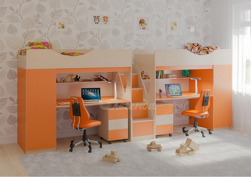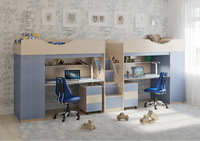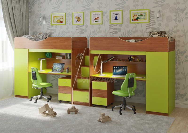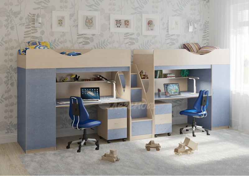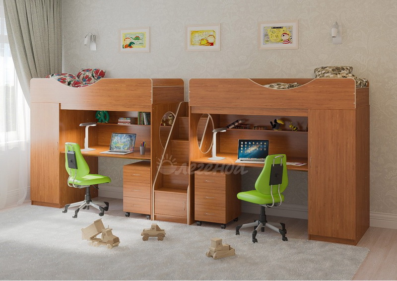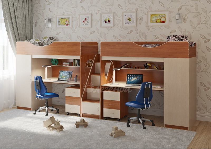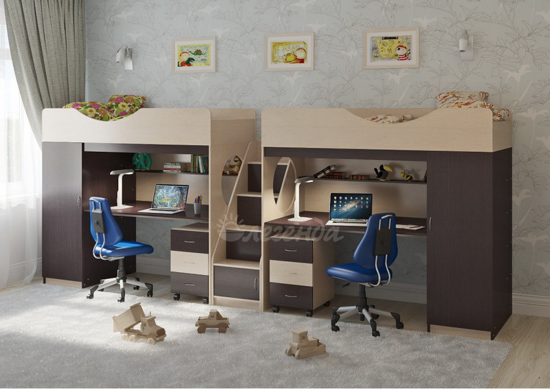 Две кровати Легенда 9 с комфортным спальным местом размером 1800х800. У каждого ребенка своя учебная зона со столом под спальным местом - возможности для письменных работ.