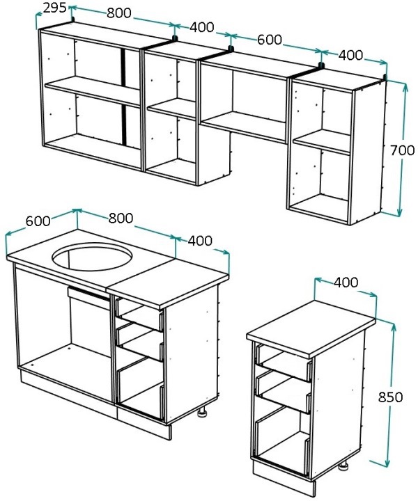Есть все необходимые отверстия под петли, ручки. Фурнитура входит в комплект (ручки, ножки, петли, элементы крепления.