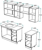 К данному гарнитуру подходит круглая мойка размером 490*500 мм.