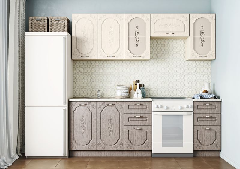 Кухня в стиле Прованс с красивой фрезеровкой на фасадах.