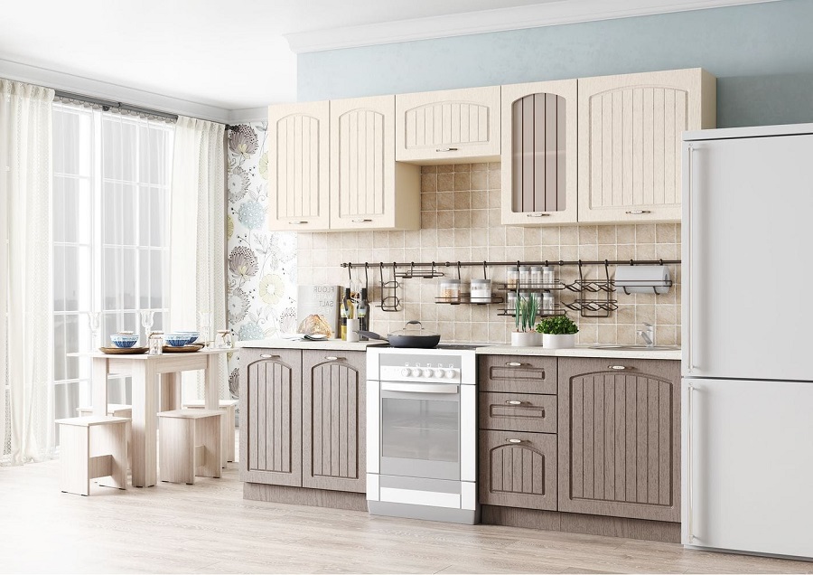 Красивая кухня в стиле Прованс будет хорошо смотреться на вашей кухне. Фасады засчет вертикальной фрезеровки очень красивые.