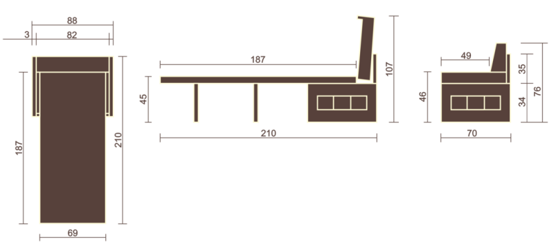 • Модель без спального места. Вместо трансформирующейся в спальное место секции может быть установлен ящик.