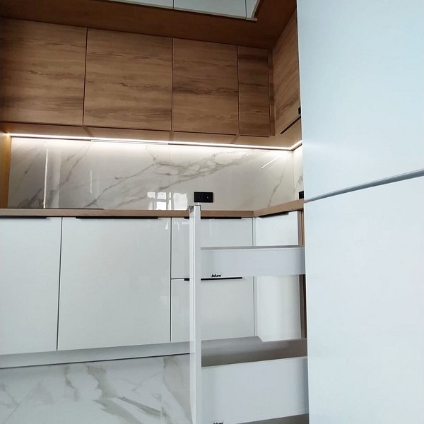 Кухонный гарнитур с для Андрея по индивидуальному проекту с акриловыми фасадами Акрилюкс Италия.