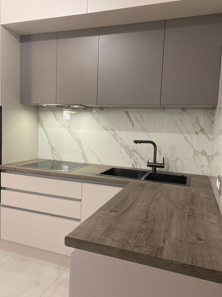 Лаконичная кухня в удачных цветах! Такое цветовое решение никогда не надоест и станет любимым местом всех членов семьи!