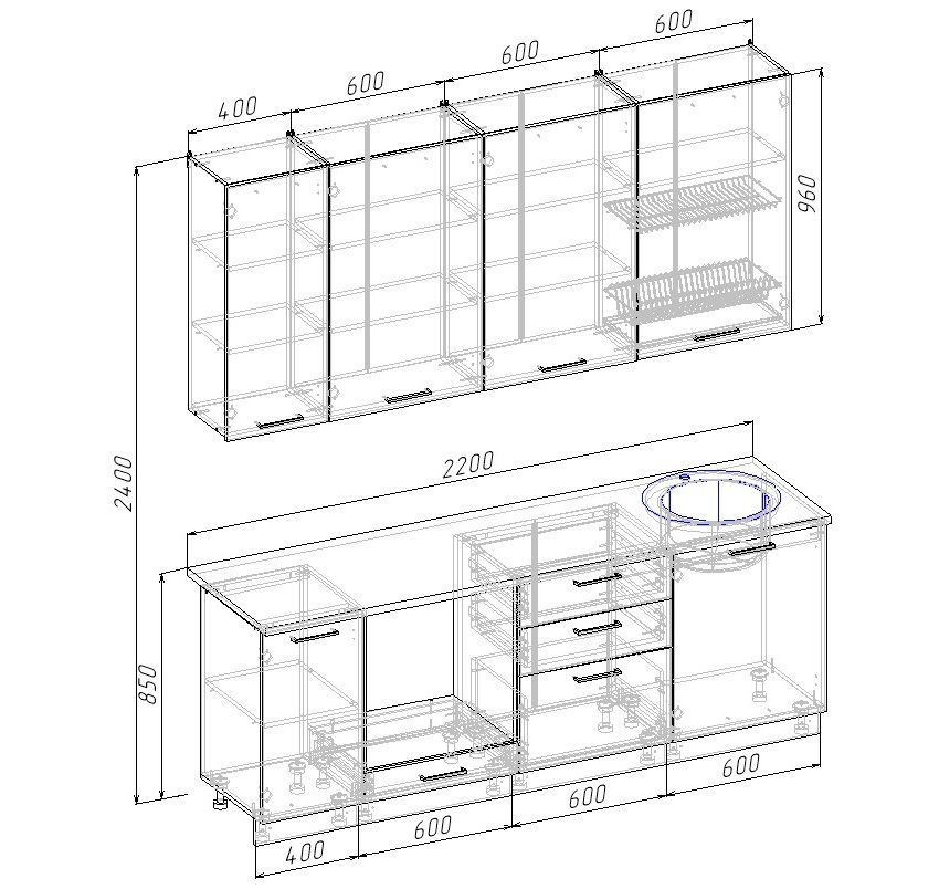 Кухонный гарнитур Крю 2200 мм
