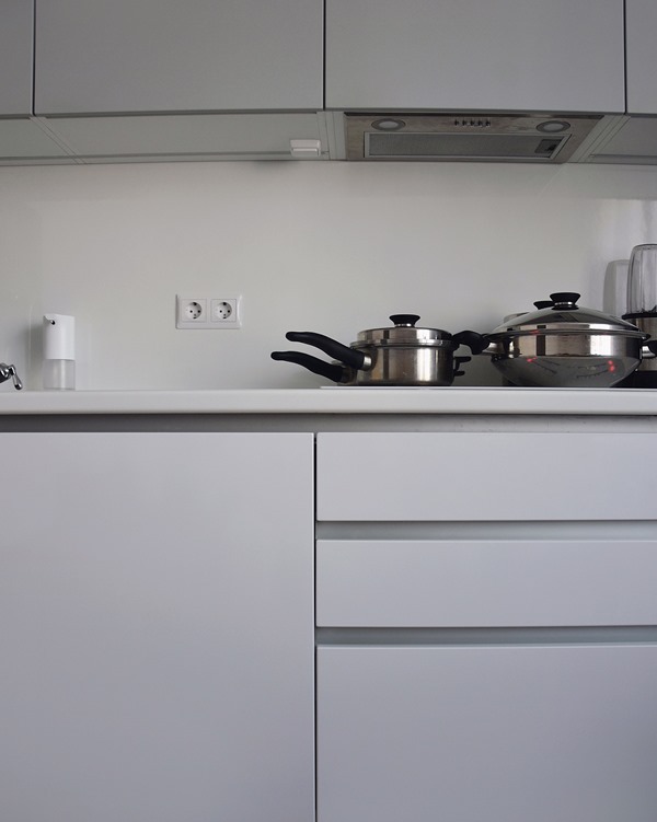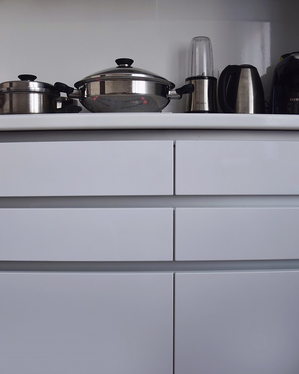 В стоимости: корпус, фасады, столешница, ручки (Shuko), доводчики.