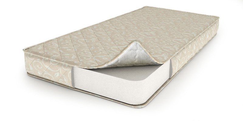 Матрас умеренно мягкий, беспружинный. Наполнитель: пенополиуретан высокой плотности, высотой 14 см. Чехол – жаккард, простеганный на синтепоне, с окантовкой.