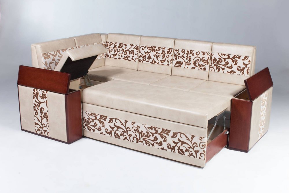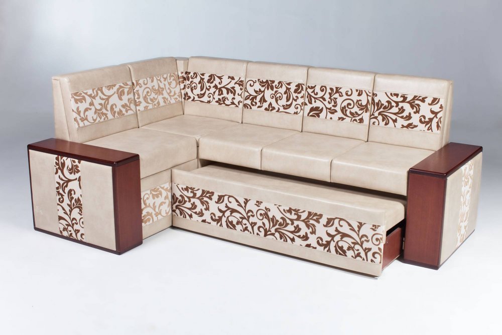 - Модель без спального места, с выкатным ящиком. Вместо трансформирующейся в спальное место секции может быть установлен выкатной ящик.