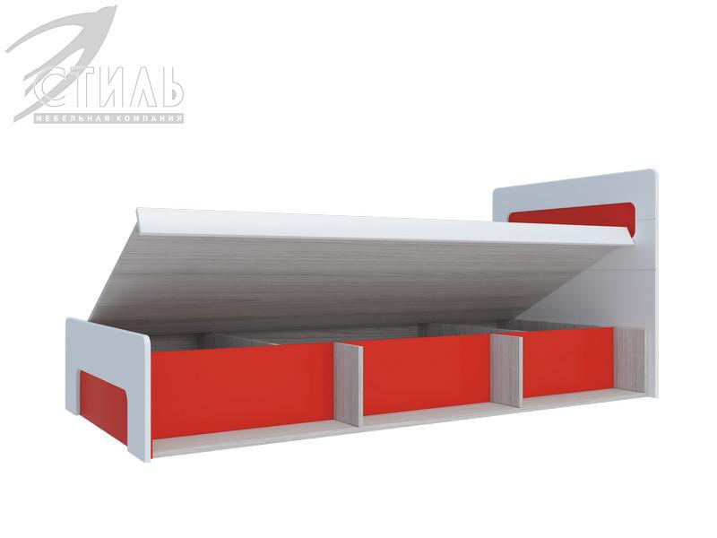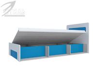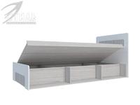 - Кровать имеет металлические подъемные механизмы и секции для хранения.