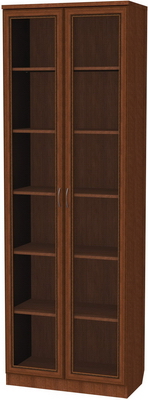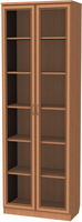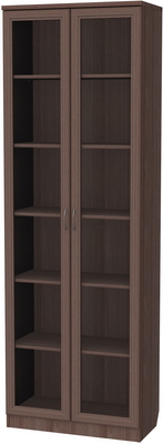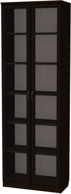 Книжный шкаф с двумя дверцами является в данном случае носителем хорошего сочетания красоты, стиля и практичности. Невероятно вместительный (высота более 2.2м), он обладает шестью довольно широкими полками. Этот шкаф – главный хранитель сокровищ вашей библиотеки. Вы можете подобрать один из нескольких оттенков, которые соответствуют оттенкам натурального дерева. Практически в любом интерьере хорошо будет смотреться однотонный окрас (дуб, ольха, молочный дуб), а двухцветный венге – поможет комнате заиграть новыми красками, особенно если она выполнена в однотонном решении.