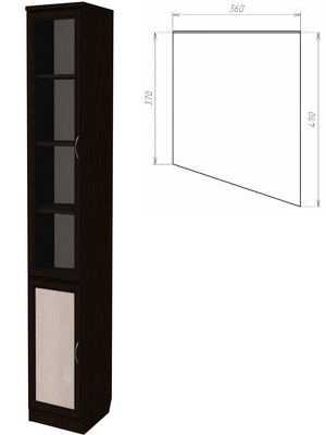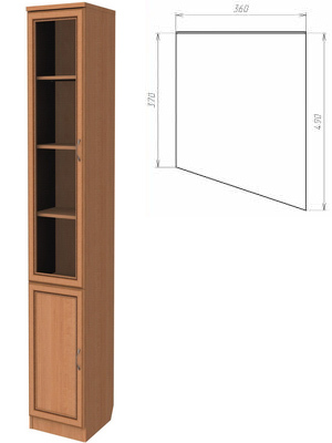Шкаф разделен на две отдельные части. Верхняя часть предназначается для хранения книг. Дверь верней части состоит из стекла, а книги за стеклянной дверкой смотрятся очень элегантно. Верхняя часть обладает четырьмя полочками, одинаковыми по площади, равноудаленными одна от одной. На полках можно поместить большое количество книг, весьма удобным является то, что полочки достаточно велики для хранения не только обычных по размеру книг, но и больших печатных изданий.