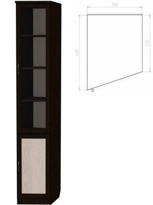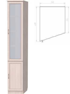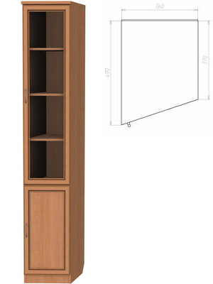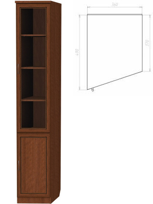 Шкаф разделен на две отдельные части. Верхняя часть предназначается для хранения книг. Дверь верней части состоит из стекла, а книги за стеклянной дверкой смотрятся очень элегантно. Верхняя часть обладает четырьмя полочками, одинаковыми по площади, равноудаленными одна от одной. На полках можно поместить большое количество книг, весьма удобным является то, что полочки достаточно велики для хранения не только обычных по размеру книг, но и больших печатных изданий.