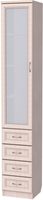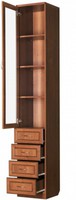 Нижняя часть шкафа снабжена четырьмя выдвижными ящичками. Также как и полочки, ящики обладают одинаковой площадью и высотой. Благодаря современным надежным механизмам движения, ящички легко скользят, а поломка механизма движения очень маловероятна. В ящичках можно очень удобно хранить разнообразные мелкие предметы, которые необходимо всегда иметь под рукой.
