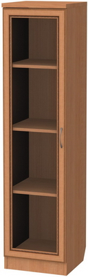 Вашему вниманию предлагается одна из разработанных нами линий для решения этой задачи. Первый предмет мебели в серии – простой, и в то же время миловидный шкаф небольшой высоты и ширины, который отлично расположится в любом помещении. Особенность данной модели в том, что при небольших габаритах она имеет несколько полок, закрытых стеклом, достаточно высоких для того, чтобы вместить объемные тома, фотоальбомы или любые сувениры и вещи, которые обычно не помещаются на низеньких полках. Данный шкаф может отлично подойти для небольшой гостиной комнаты: ведь он займет совсем немного места. С другой стороны, его можно очень удачно скомпоновать с другими шкафами из этой же серии и тогда получится интересный ансамбль, который придаст оригинальный вид вашей комнате или библиотеке. Естественно, его не только можно поставить в любом помещении, но он еще и отлично впишется в любой интерьер – квартиры или дома, офиса, учебного класса – благодаря своему универсальному, лаконичному, но очень стильному дизайну.