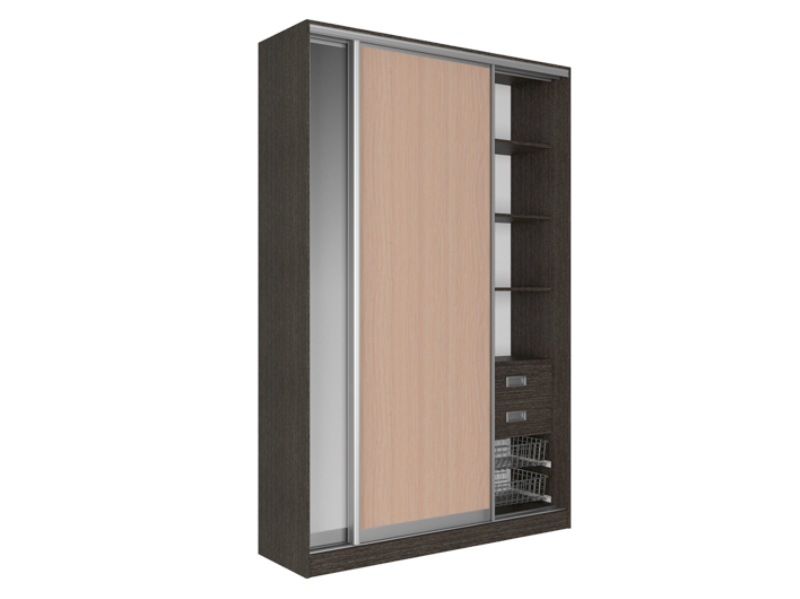 Алюминиевая система направляющих, кромка АБС на наружных частях шкафа, идеально сконструированные пропорции шкафа.
