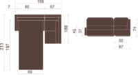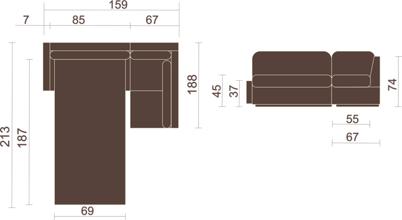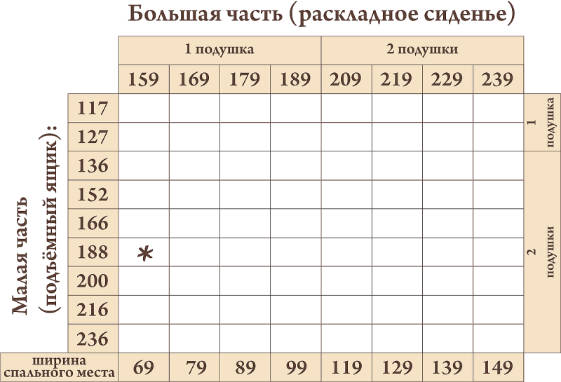 • Модель без спального места, со скрытым ящиком. Вместо трансформирующейся в спальное место секции может быть сделан ящик.